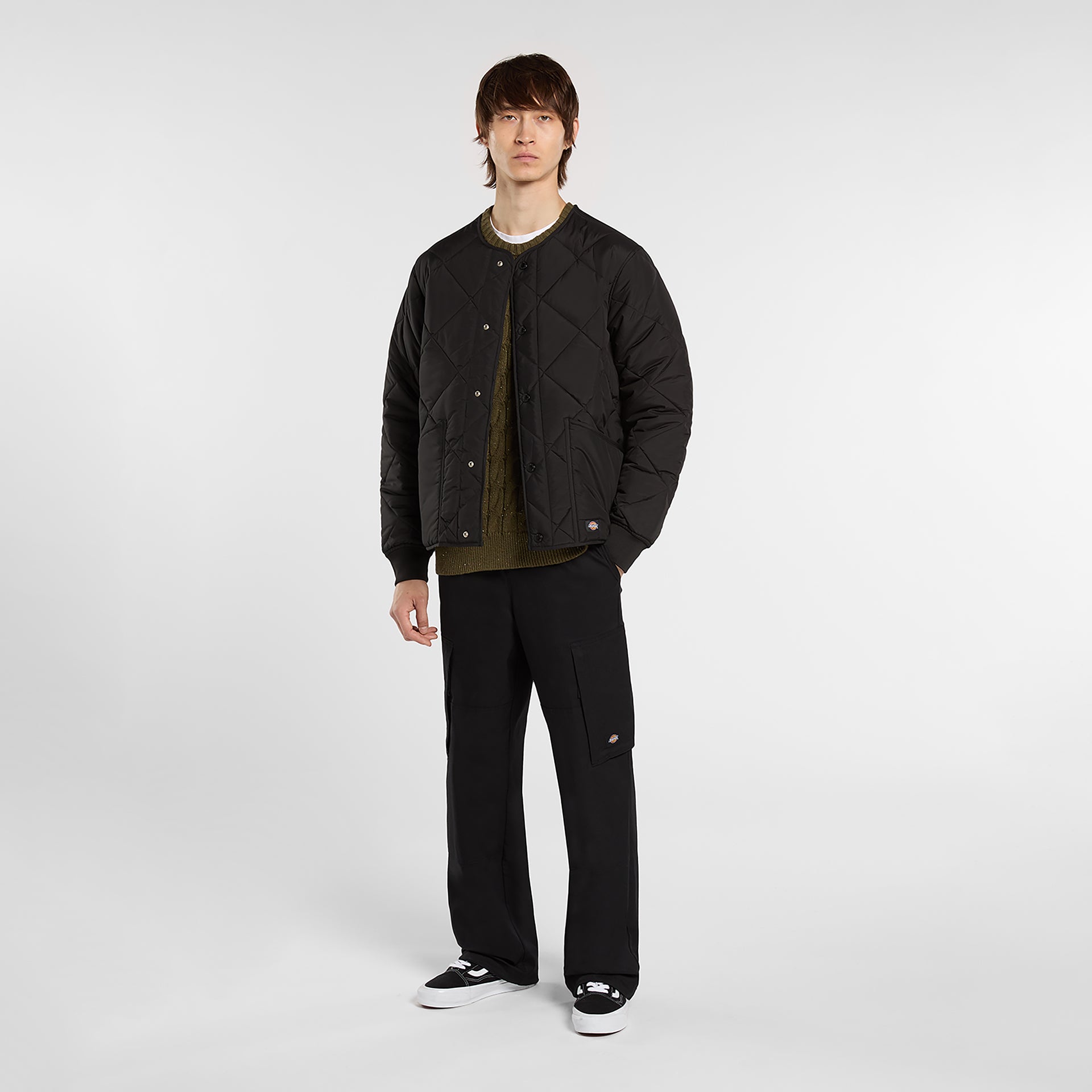 A rappresentare il DNA Dickies ci sono i pantaloni da lavoro double knee Coalfield. Tecnici, resistenti e comodi, sono realizzati in policotone elasticizzato che garantisce una sensazione di morbidezza. Ispirati all’abbigliamento workwear, presentano tasche anteriori e posteriori con chiusura a bottone e aperte, tasche utility con zip sulle gambe, una piega anteriore e posteriore per un aspetto più raffinato e l'iconica etichetta Dickies intessuta sulla parte anteriore sinistra.
