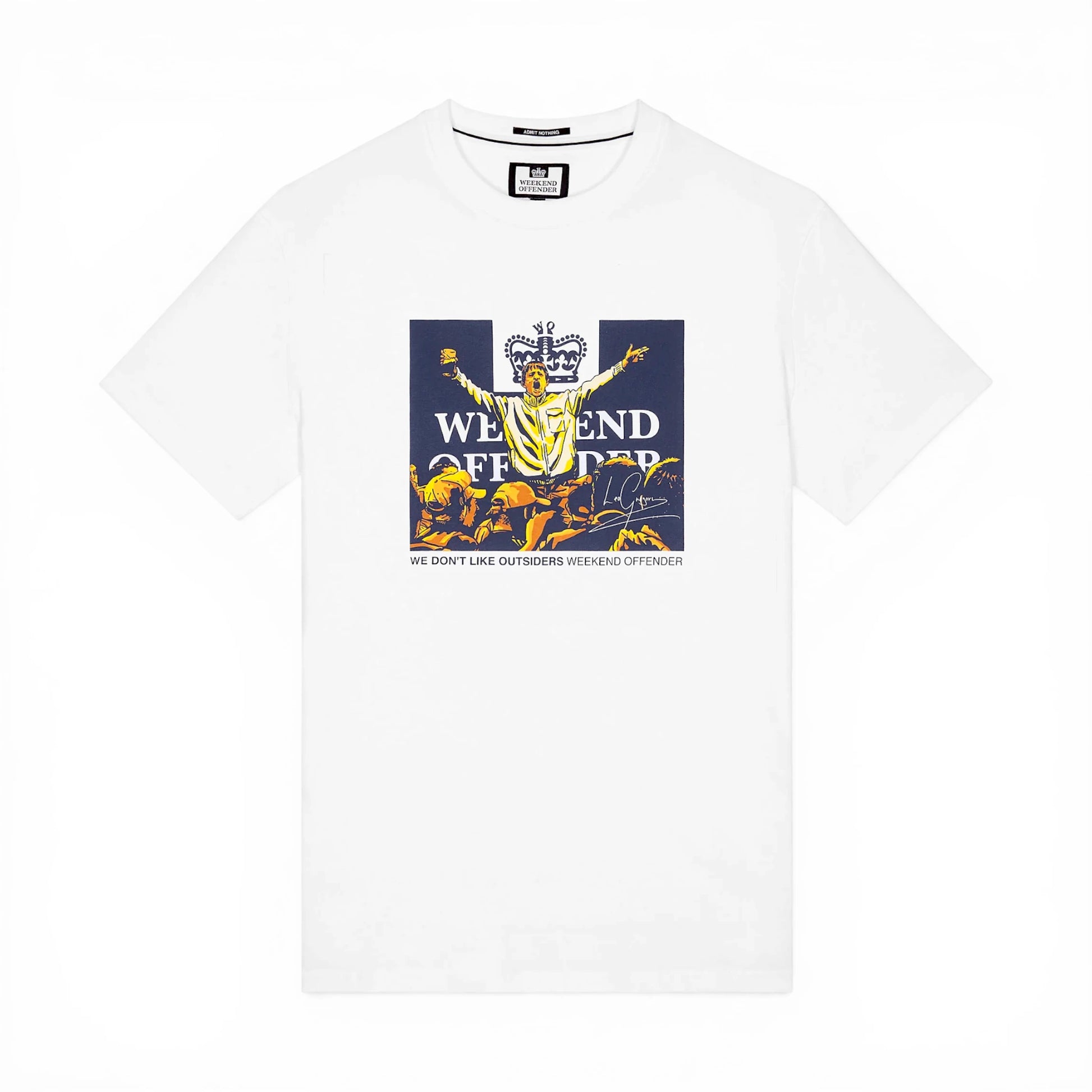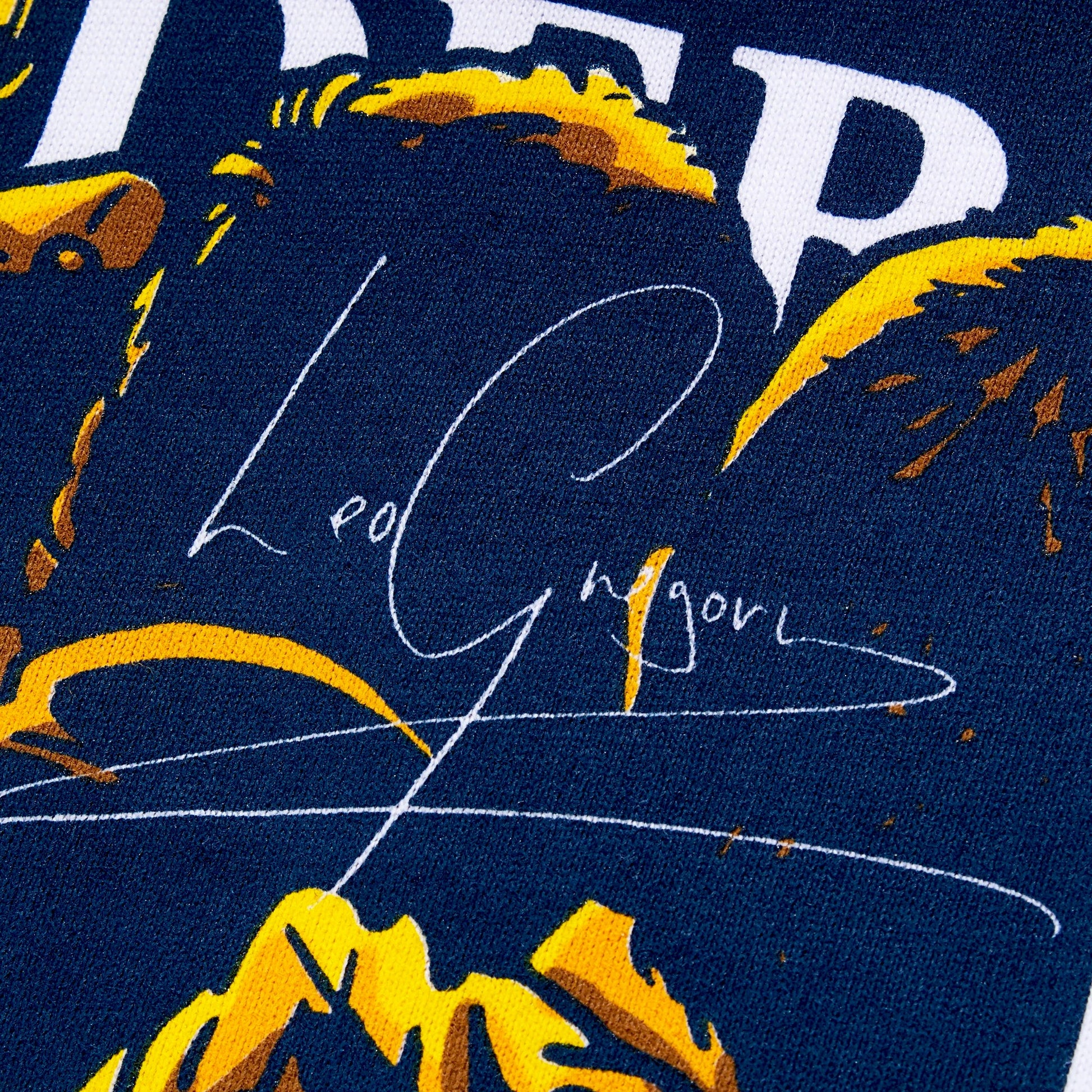 Una t-shirt girocollo in cotone al 100% con grafica realizzata in collaborazione con l'attore Leo Gregory.