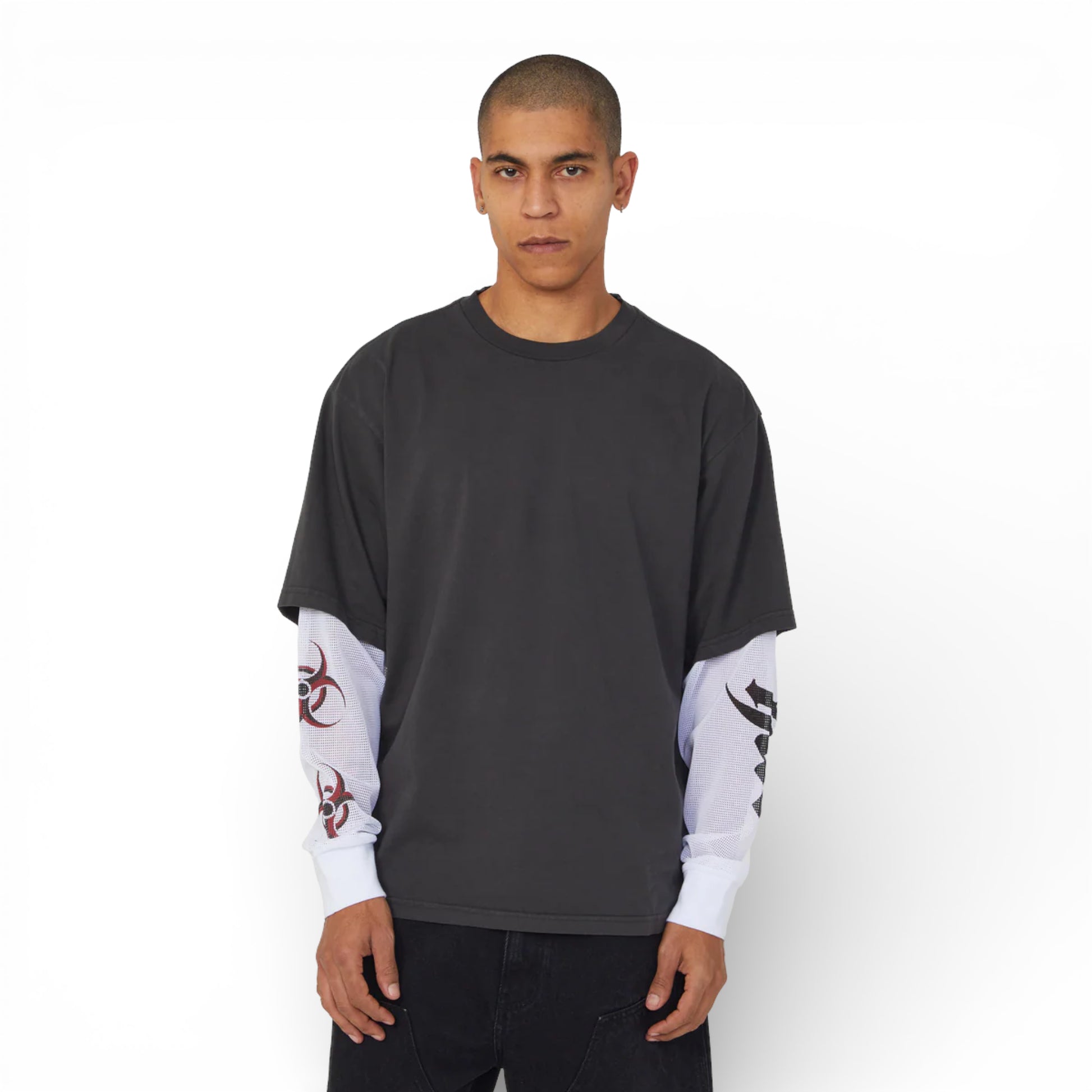 Strati a questo. Il top a doppio strato Leon LS combina uno strato superiore lavato di cotone con maniche a rete con nuove grafiche stagionali.