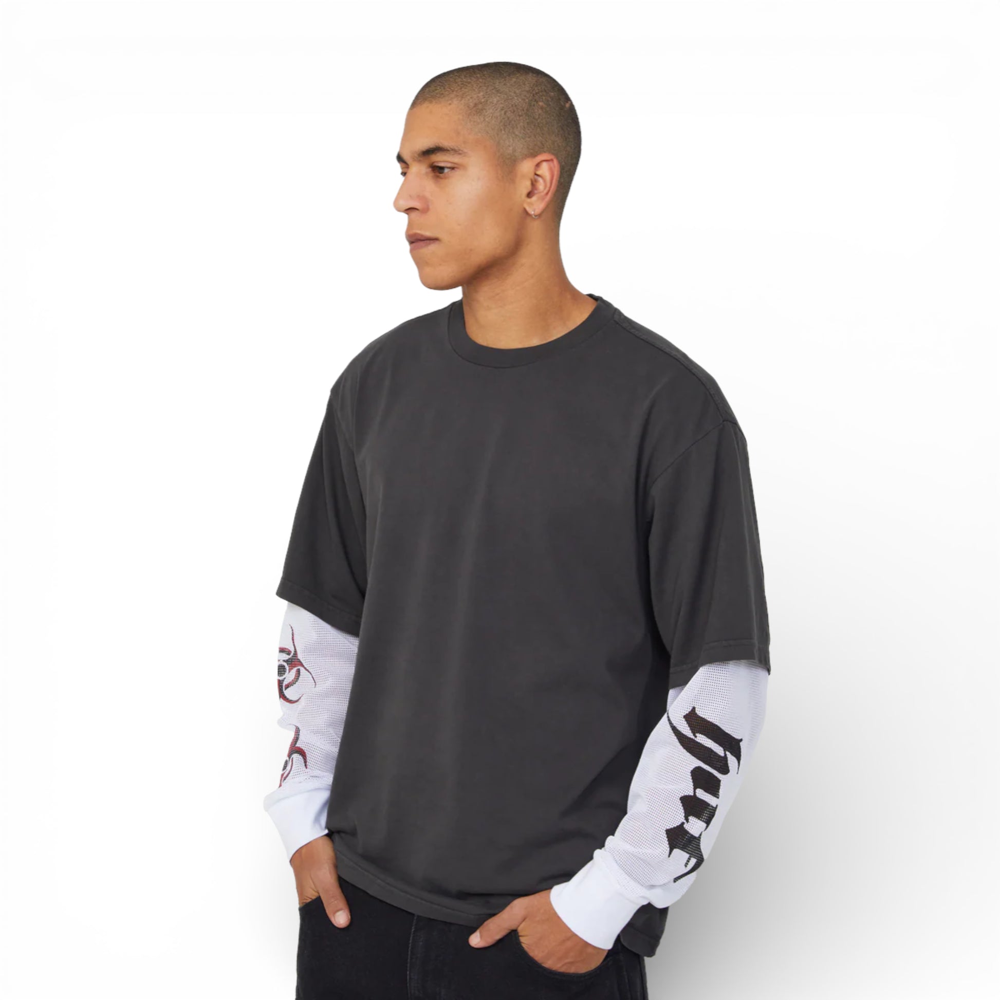 • Etichetta tessuta HUF sul collo interno